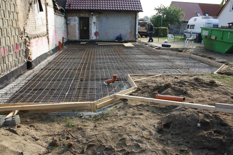 Doppelt bewehrte Bodenplatte mit Fundamentringerdung